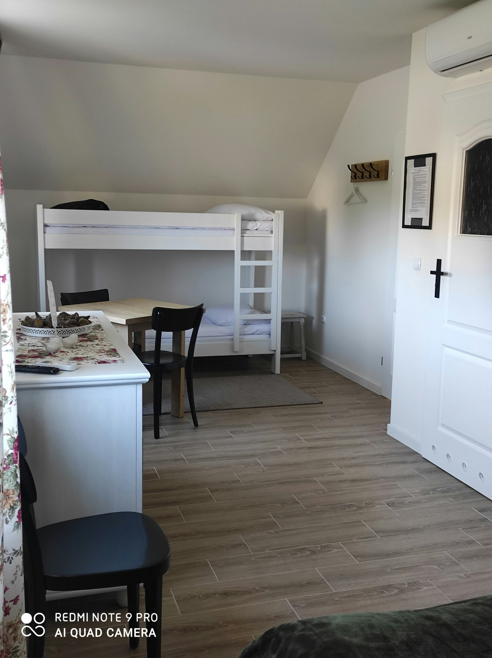 Pokój 4 os. rodzinny z łóżkiem małżeńskim oraz łóżkiem piętrowym dla dzieci