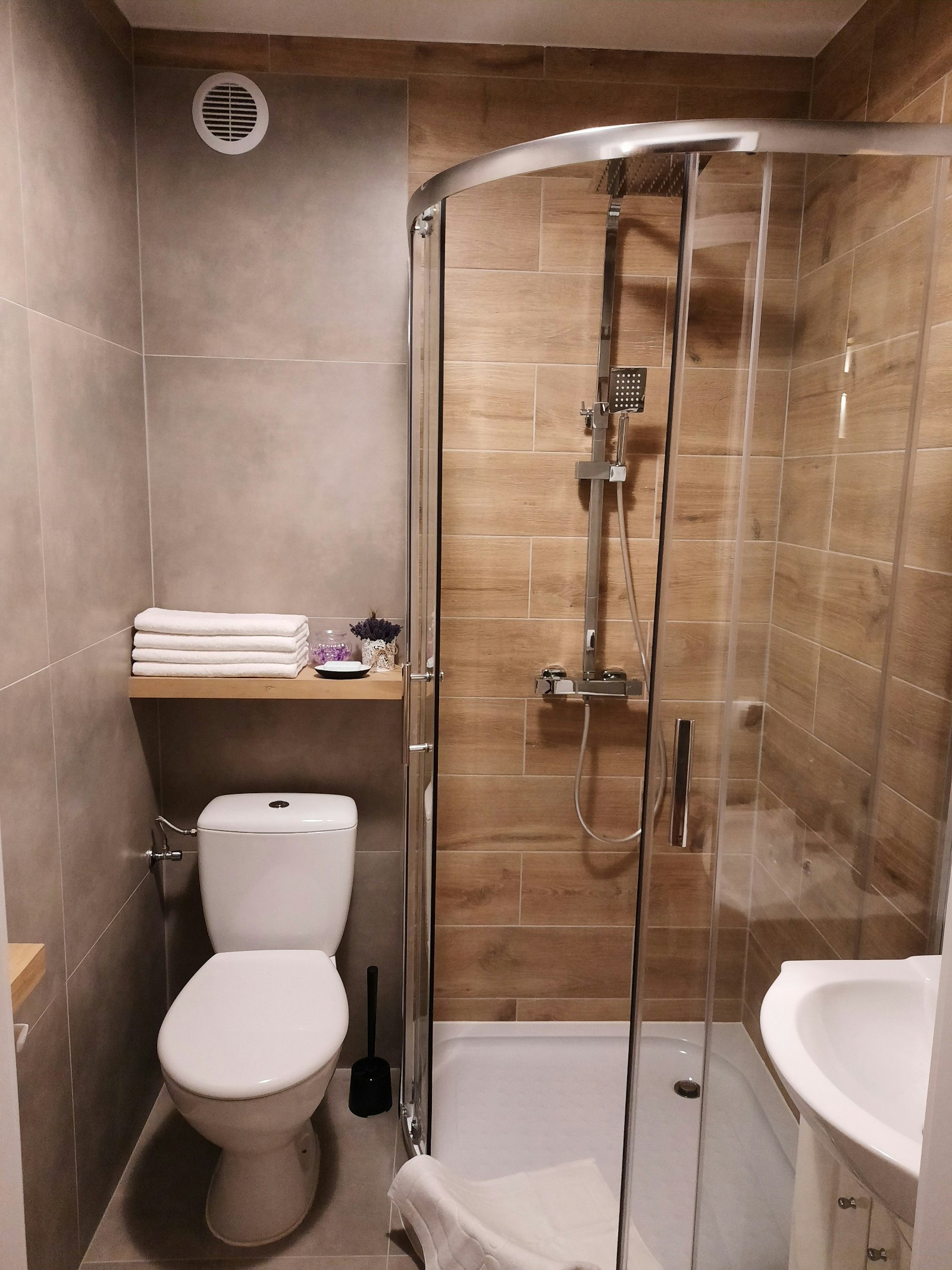 Pokój 5 os z tarasem, łóżkiem małżeńskim, pojedynczym łóżkiem + duży materac pod dachem